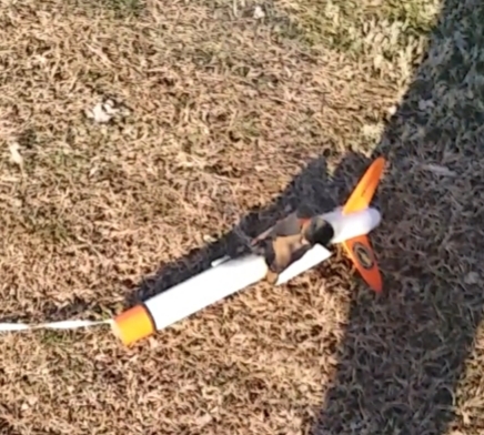 Motor blew a few feet off the ground. Hole was burnt through tocket tube above motor mount. Motor still in mount completely hollow.