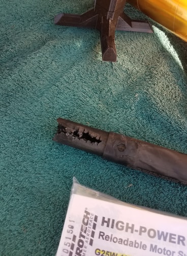 moon burner, went up about 100 feet, then burned through the phenolic and the reload case. Destroyed rocket and case.
