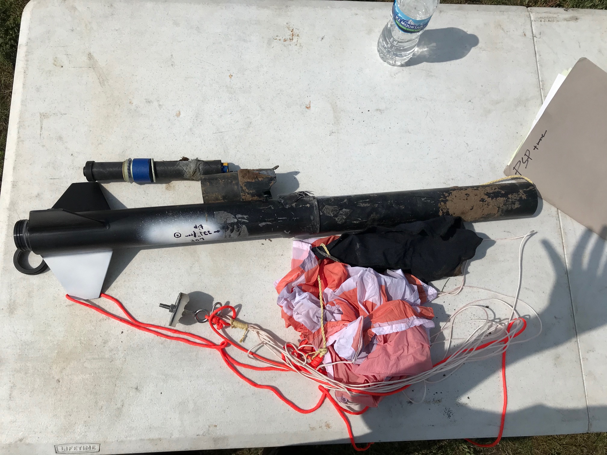 Motor ignited and burned nominally, recovery failed to deploy although a pop was heard. Rocket lawn darted and was recovered in this state.