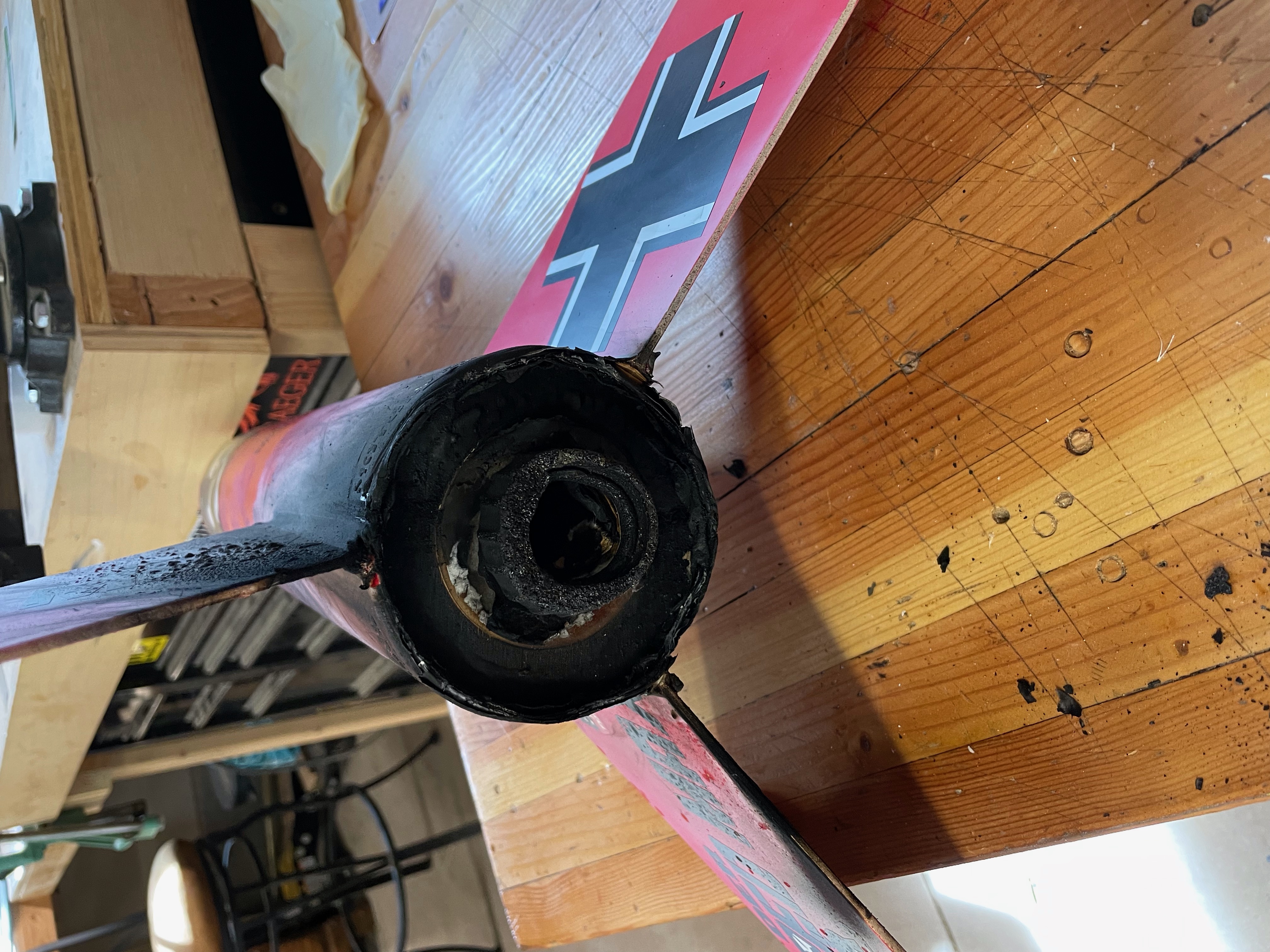 Motor ignited, lifted 6" then fell back on pad and continued to burn, No ejection charge