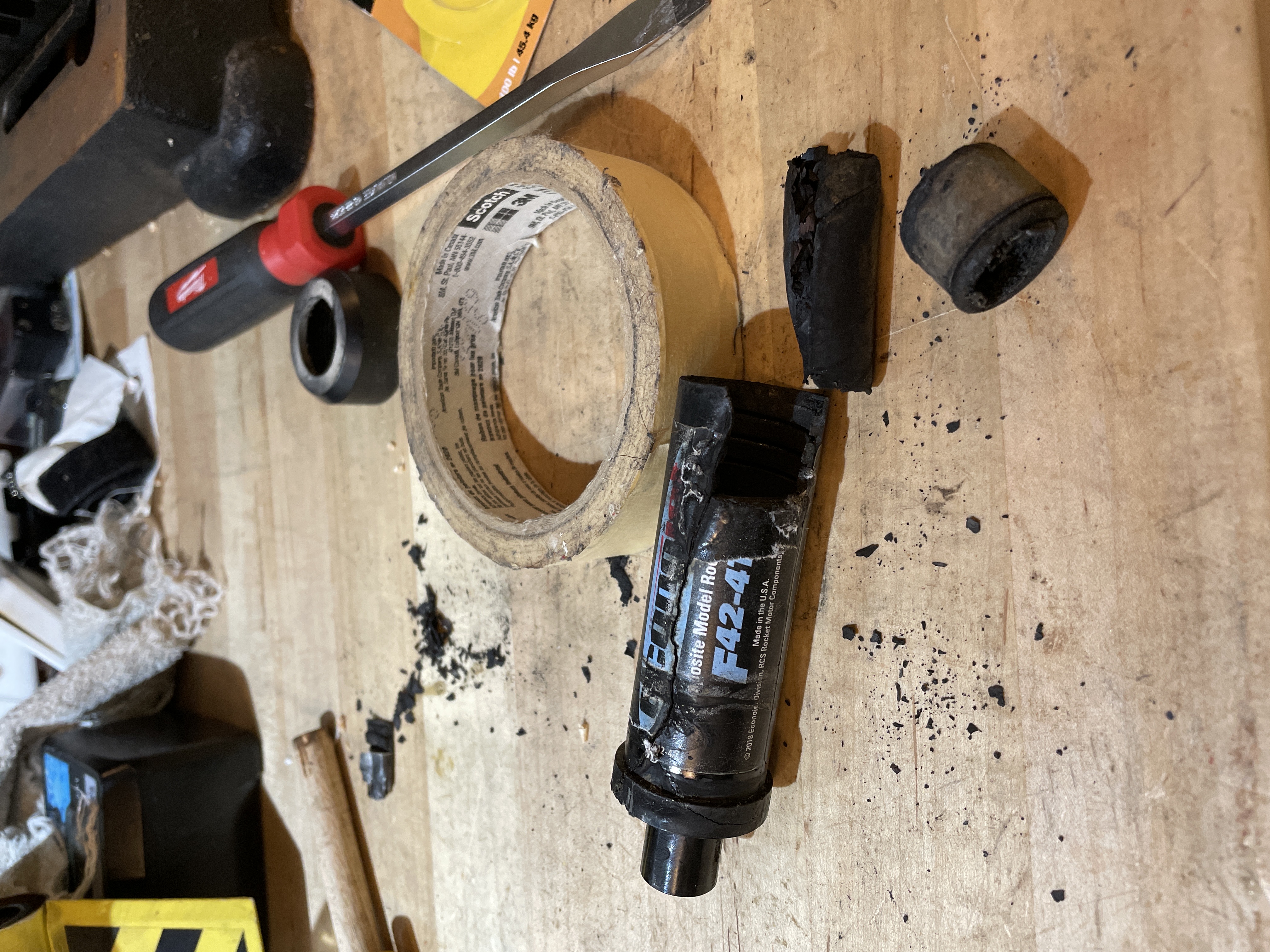 Burning propellant ejected