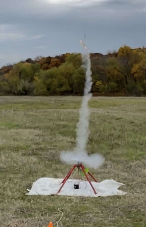 From slo-mo video, motor burned for 0.22 seconds before ejection charge lit and ejected nose cone.