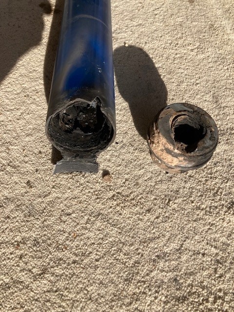 Normal boost with 24 lb. rocket to about 800 ft. Explosive event, blew 5" fiberglass fincan in half. Forward closure was found 50 ft. from wreckage.