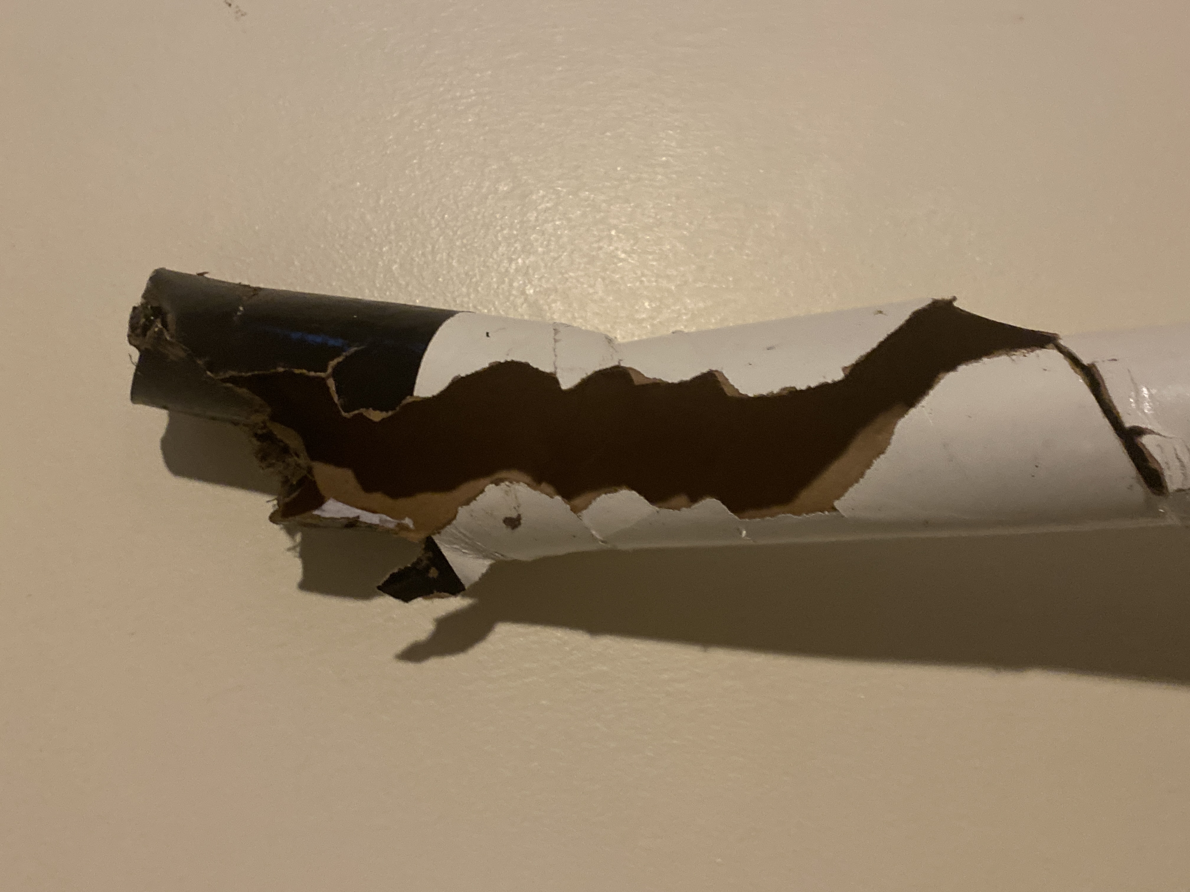 5 seconds after burnout, you could hear a short “fizz” sound, the top of the ejection charge was very fragile and crumbled easily, it looks like the ejection charge either didn’t fire at all, or partially fired, however, the delay burned all the way through.