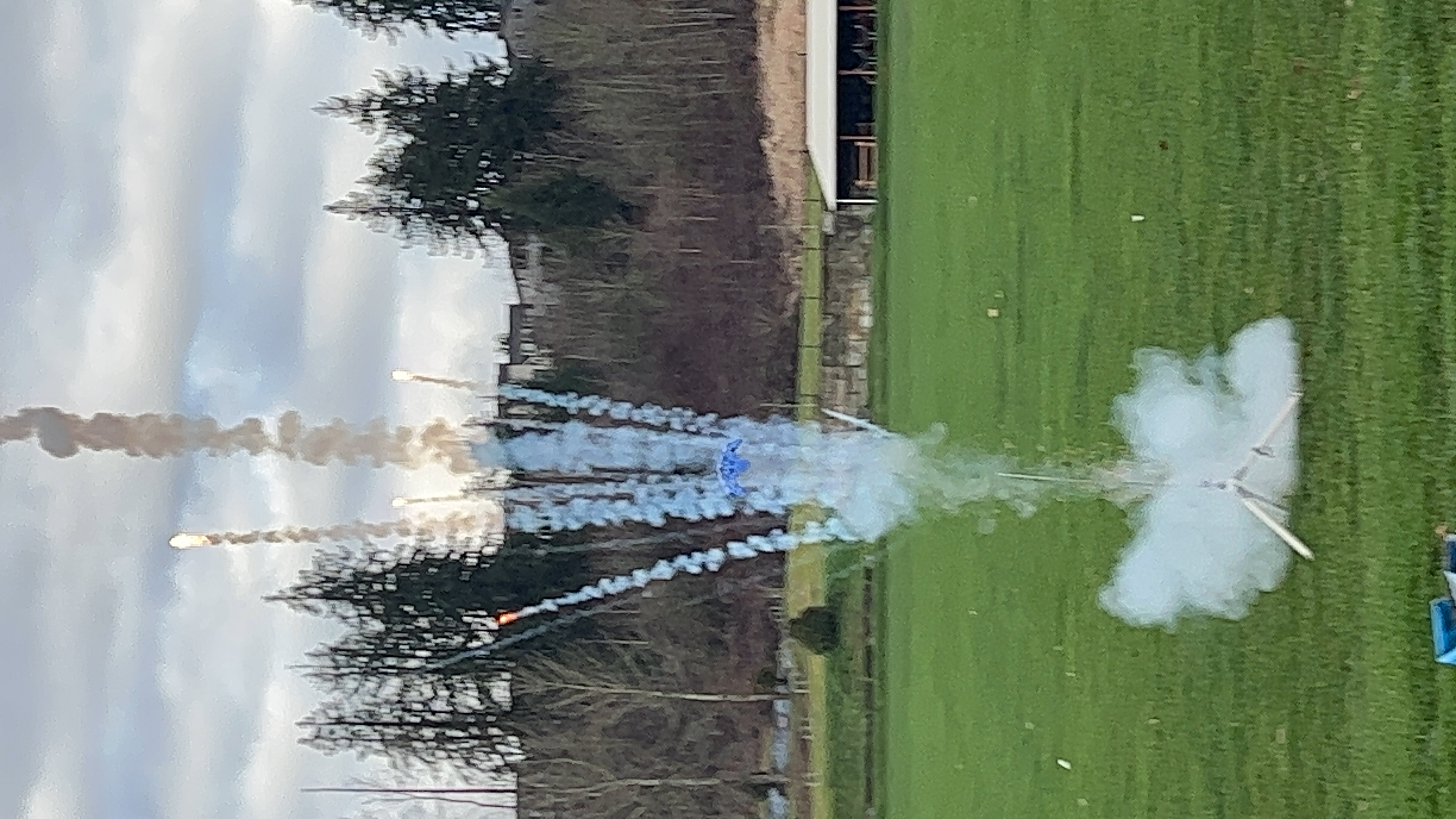 All the propellant blew out the top a very short time after ignition when the model was perhaps six feet in the air.