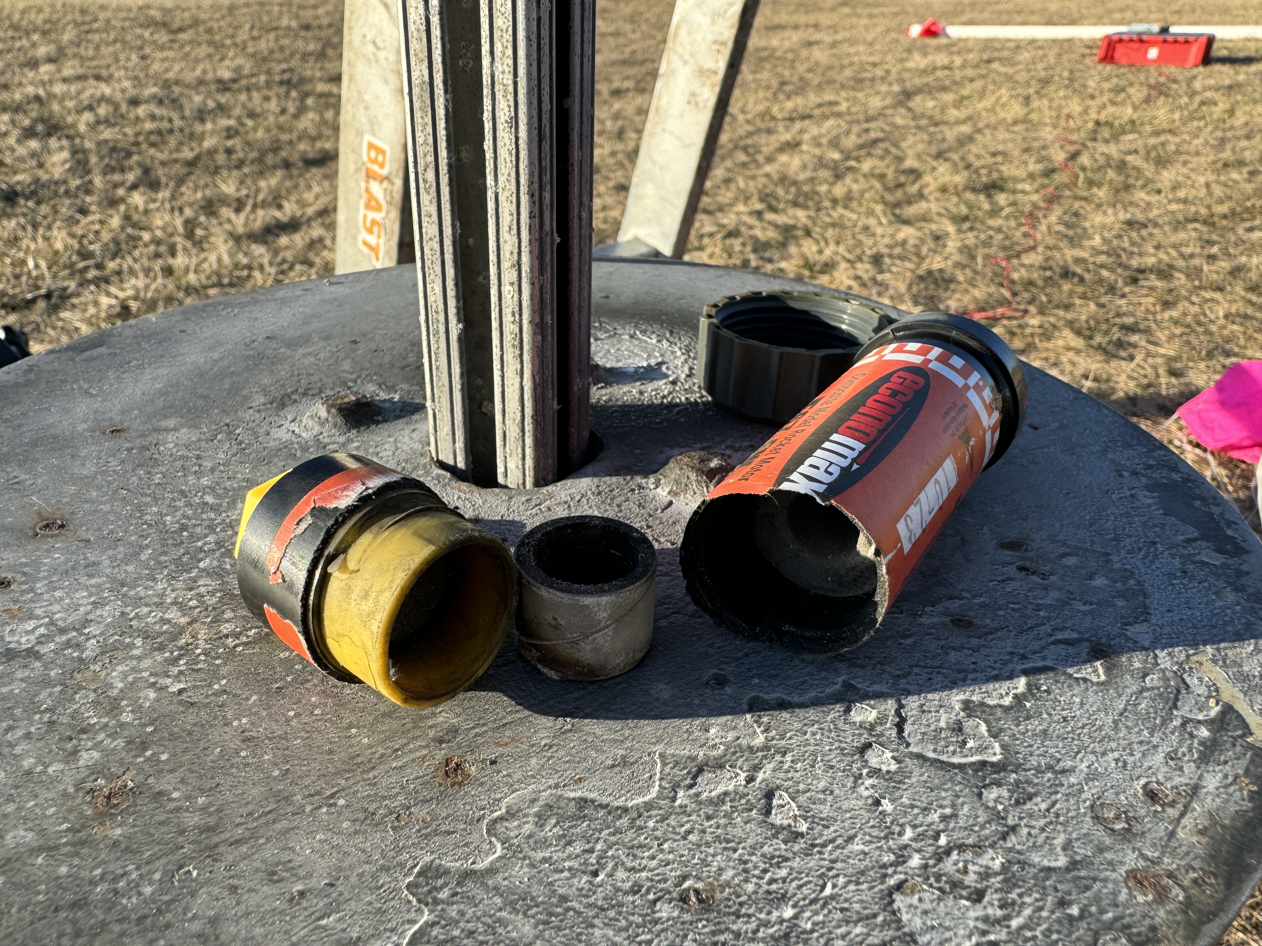 Motor ignited and burned normally for a moment before the top of the motor (ejection charge section) blew off resulting in what looked like a premature ejection but upon closer inspection the ejection portion of the motor did not get ignited. Rocket did not get off pad