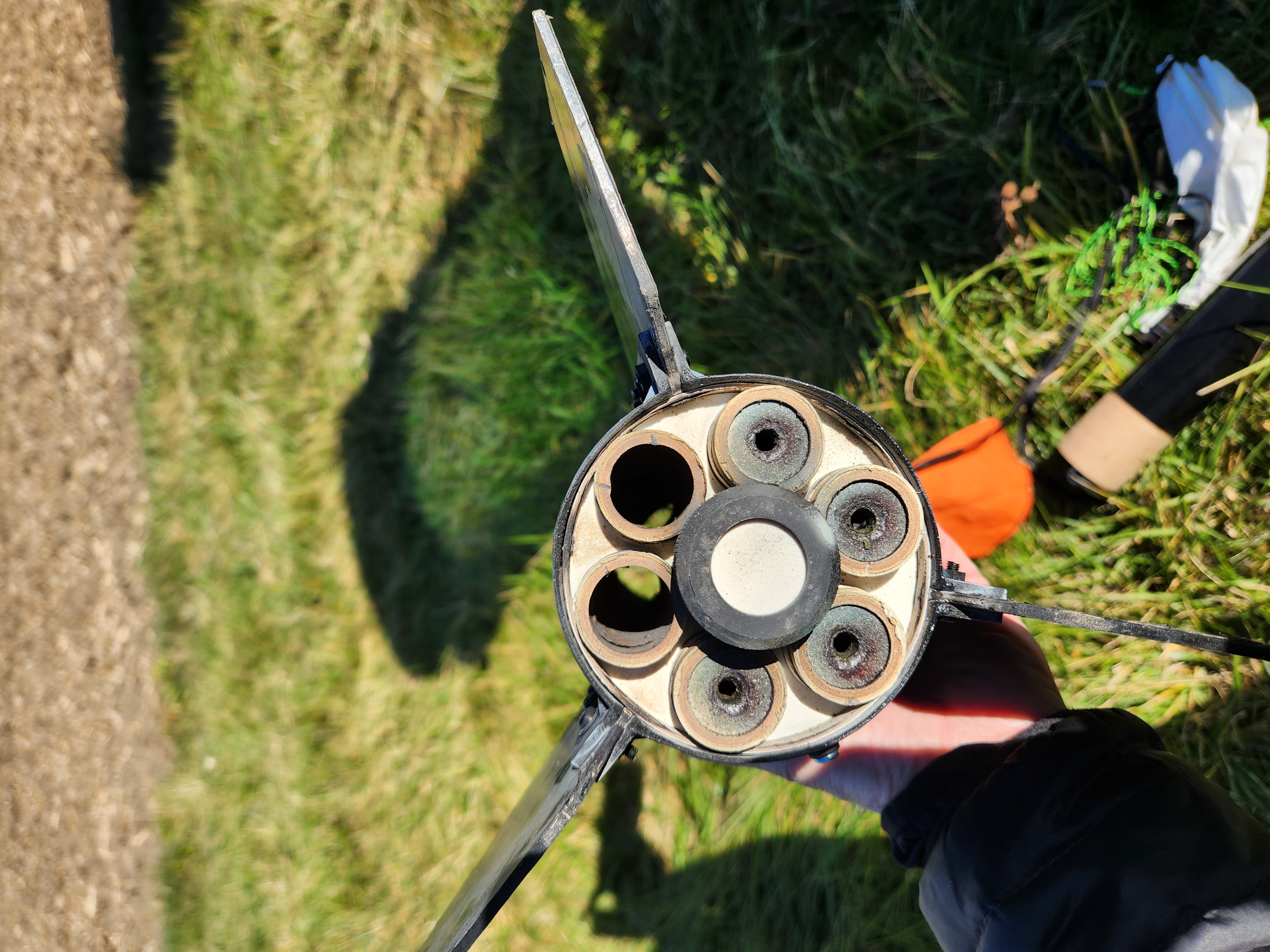 Burning propellant ejected
